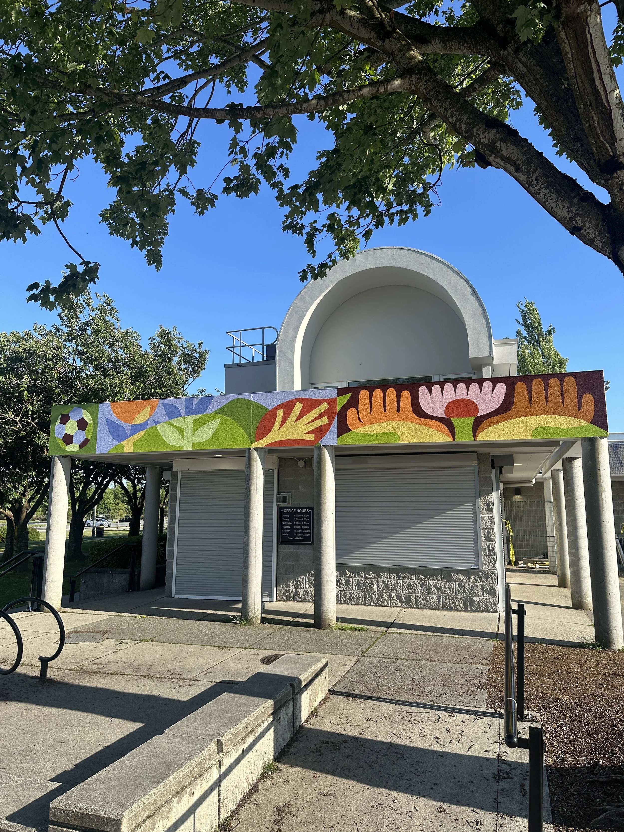 I had the opportunity to paint this lengthy mural on a boarded up business amidst the Covid-19 pandemic. It’s Inspired by 70’s decor and being at home, working with this palette brought some well received energy to my practice during the pandemic . Made with support from the Vancouver Mural festival and Robson street